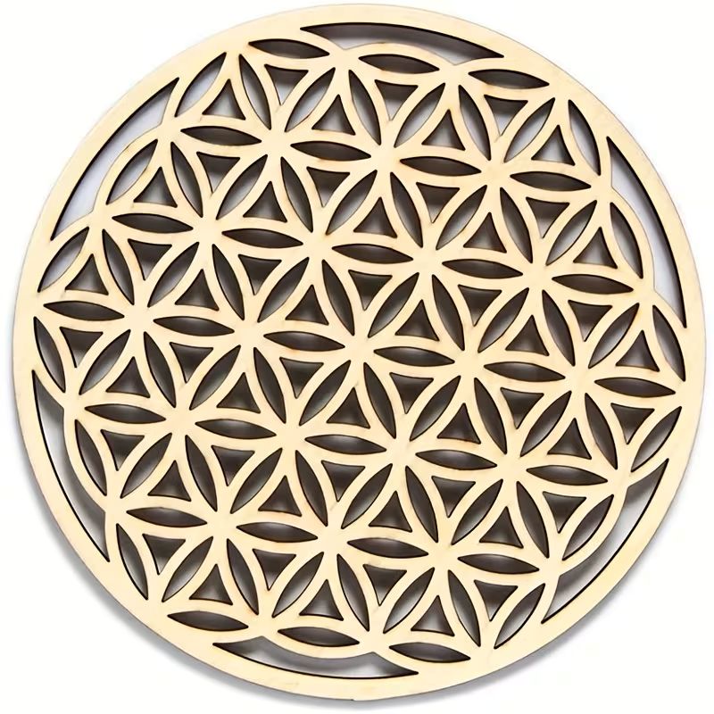 Fleur de Vie en Bois – Géométrie Sacrée – Lithothérapie – Dynamiseur Énergétique – Rechargement Minéraux – Symbole Énergétique